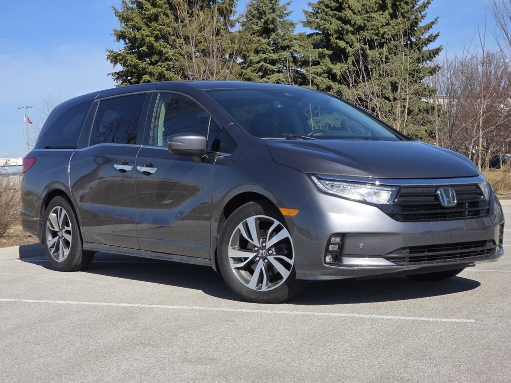 This meticulously certified 2021 Honda Odyssey Touring available in Maumee, OH showcases a well-maintained Modern Steel Metallic exterior and a luxurious Black interior that stands out throughout Northwest Ohio and Southeast Michigan.