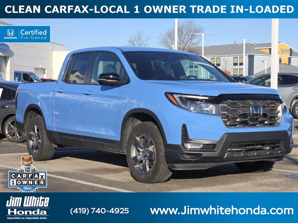 Please call 419-740-4925 anytime! for more info on this certified 2025 Honda Ridgeline TrailSport.This car is equipped with premium features like * CLEAN CARFAX *, * BOUGHT & SERVICED HERE *, * CARFAX 1-OWNER *, * LOCAL 1-OWNER *, * LOW MILES *, * LOCAL-TRADE-IN *, *SOLD HERE NEW*, AWD, NAVIGATION, 4X4, MOONROOF, LEATHER, HEATED SEATS, APPLE CARPLAY, WIRELESS PHONE CHARGER, REMOTE START, ANDROID AUTO, TOW PKG, LANE-DEPARTURE WARNING, REAR A/C, BLIND SPOT MONITORING, BACKUP CAMERA, HEATED-STEERING WHEEL, BED-LINER, ALLOY-WHEELS, GREAT COLOR COMBINATION, BLUETOOTH, WiFi Hotspot, Dual Power Seats, SiriusXM, Fog Lamps, usb, Remote entry that Toledo and Perrysburg drivers prefer.