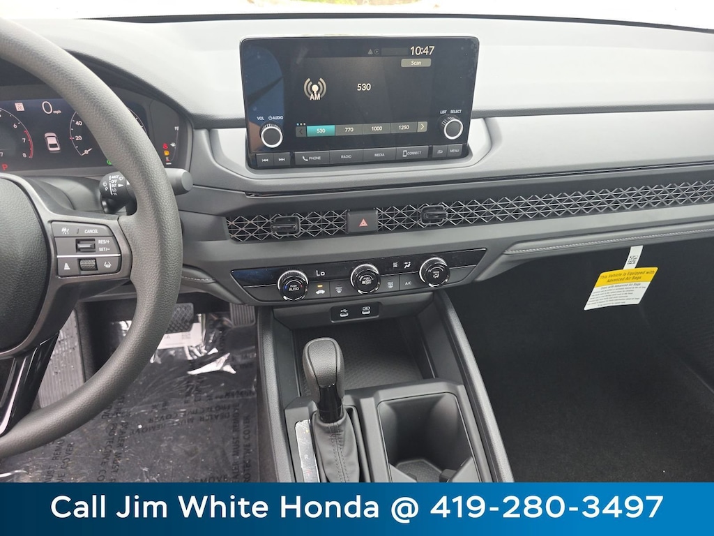 Innovative Technology Features: on this 2025 Honda Accord LX for sale: Keyless Start, Wireless streaming, Internet Radio, Voice Command Features, All-in-one key, Smart Device Integration, Primary display touchscreen, Onboard Hands-Free Connectivity and Automatic Climate Control, Compass, Steering Wheel Cruise Control, Steering Wheel Audio Controls, Rear Reading Lights, Telescoping Wheel, Auxiliary 12v Power Outlet, Driver Illuminated Vanity Mirror, Air Conditioning, Illuminated entry, Cabin Air Filter, Bucket Front Seats, Passenger Illuminated Visor Mirror, Ambient Lighting, Steering Wheel Controls, Rear Seat Center Armrest, Overhead console storage, Auto Dimming R/V Mirror, ECO feedback display gage, Reading Lights, Rear Window Defroster, Floor Mats, Center Armrest, Digital Instruments, Cup Holder(s), Trip Odometer, Outside Temperature Gauge, Vanity Mirrors, Overhead Console, Digital Clock, Bench Seats, AM/FM Stereo, Tilt Steering Wheel for a next-generation driving experience.