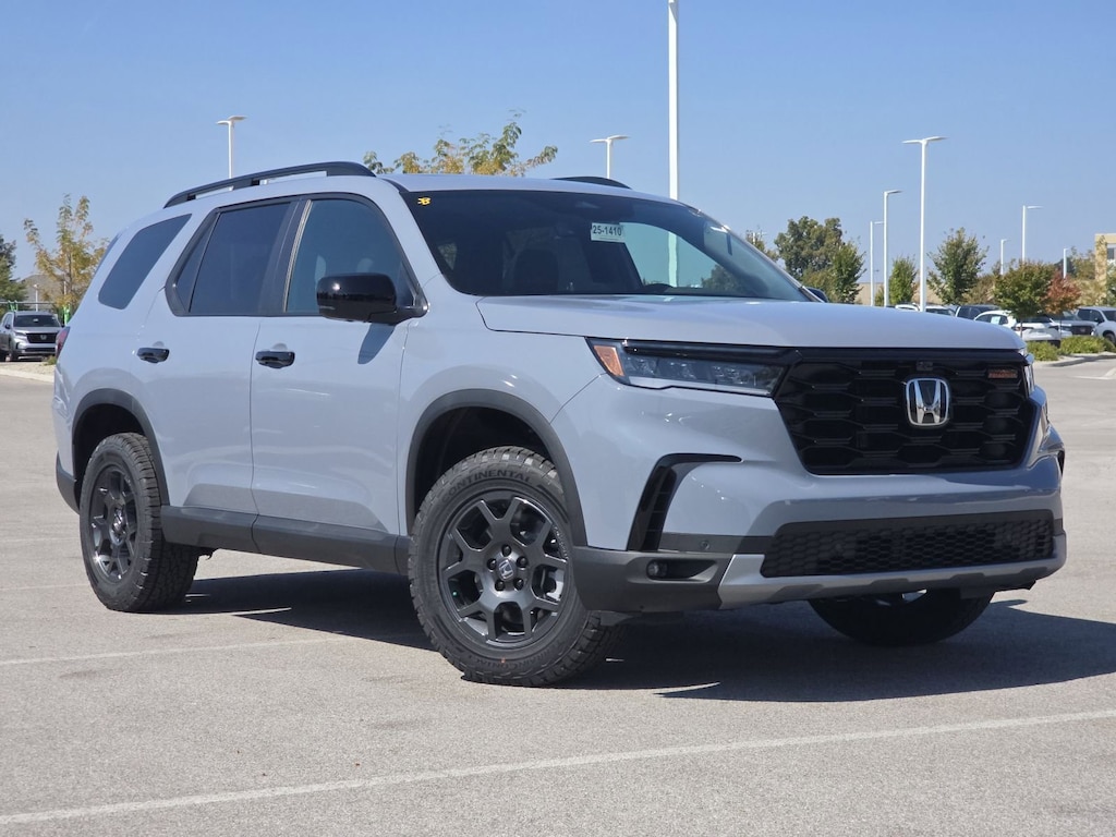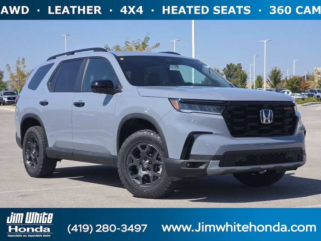 This 2025 Honda Pilot TrailSport is equipped with cutting-edge features like AWD, 4X4, LEATHER, 3RD ROW SEAT, REMOTE START, APPLE CARPLAY, HEATED SEATS, 360 CAM, WIRELESS PHONE CHARGER, ANDROID AUTO, LANE-DEPARTURE WARNING, BACKUP CAMERA, REAR A/C, HOMELINK, ALLOY-WHEELS, USB-C, BLIND SPOT MONITORING, STOW "N GO, BLUETOOTH, SiriusXM, Remote entry, usb, Dual Power Seats, Fog Lamps that Toledo and Perrysburg drivers desire.