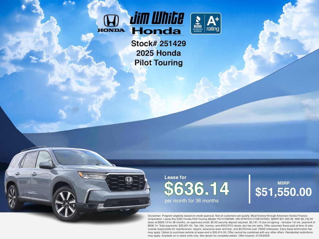 Discover Honda Pilot Touring Exceptional Savings at Jim White Honda!