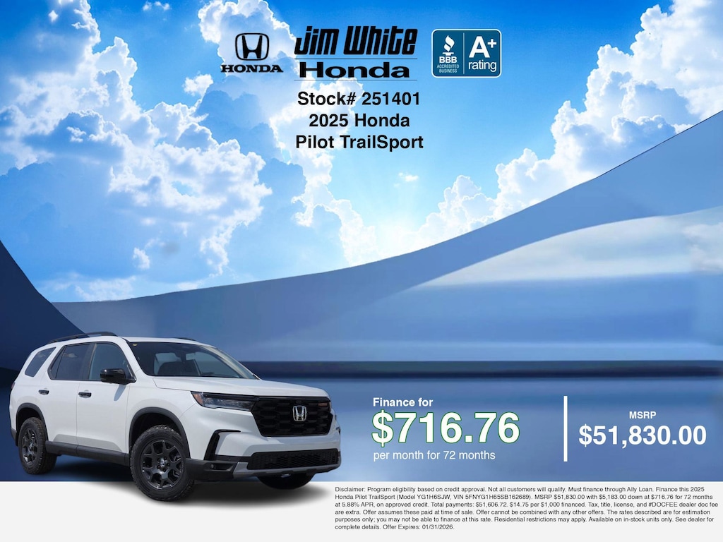 Discover Honda Pilot TrailSport Exceptional Savings at Jim White Honda!
