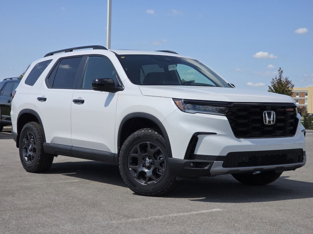 Innovative Technology Features: on this 2025 Honda Pilot TrailSport for sale: Keyless Start, Wireless streaming, Garage Door Opener, Primary display touchscreen, Built-In Amplifier, Smart Device Integration, All-in-one key, Voice Command Features, Onboard Hands-Free Connectivity and Moonroof, Automatic Climate Control, Leather Wrapped Steering Wheel, Power Drivers Seat, Memory Seats, Illuminated entry, Telescoping Wheel, Rear Reading Lights, Cabin Air Filter, Steering Wheel Audio Controls, Auxiliary 12v Power Outlet, Memory Mirrors, Bench Seat *Split*, Steering Wheel Cruise Control, Air Conditioning, Rear Stow 'n Go, Bucket Front Seats, Driver Illuminated Vanity Mirror, Multi-zone Climate Control, Overhead console storage, Rear Window Shade, Steering Wheel Controls, Ambient Lighting, 120V AC power outlets, Passenger Illuminated Visor Mirror, Auto Dimming R/V Mirror, Center Armrest, AM/FM Stereo, ECO feedback display gage, Vanity Mirrors, Overhead Console, Reclining second-row seats, Digital Instruments, Cup Holder(s), Digital Clock, Trip Odometer, Rear Window Defroster, Tilt Steering Wheel, Auxiliary Audio Input, Outside Temperature Gauge, Floor Mats, Reading Lights, Split Folding Rear Seat for a next-generation driving experience.