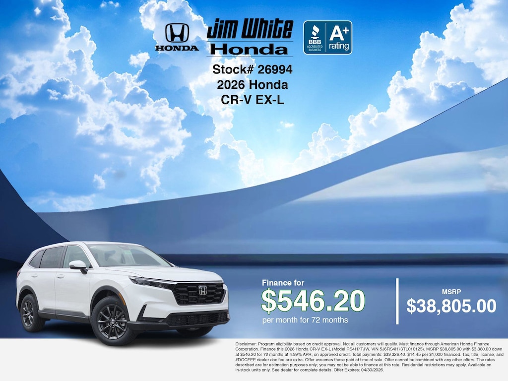 Discover Honda CR-V EX-L Exceptional Savings at Jim White Honda!