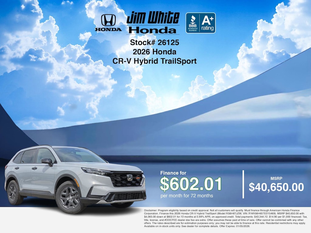 Discover Honda CR-V Hybrid TrailSport Exceptional Savings at Jim White Honda!