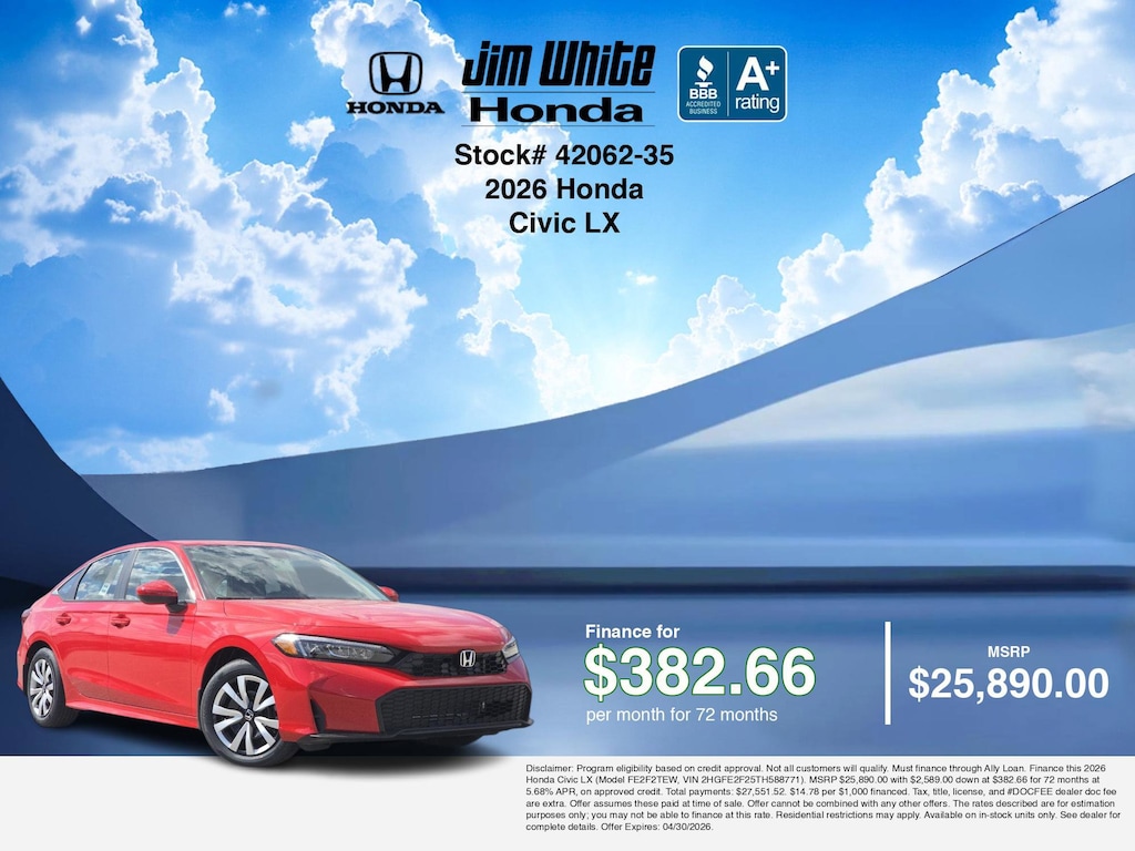 Discover Honda Civic LX Exceptional Savings at Jim White Honda!