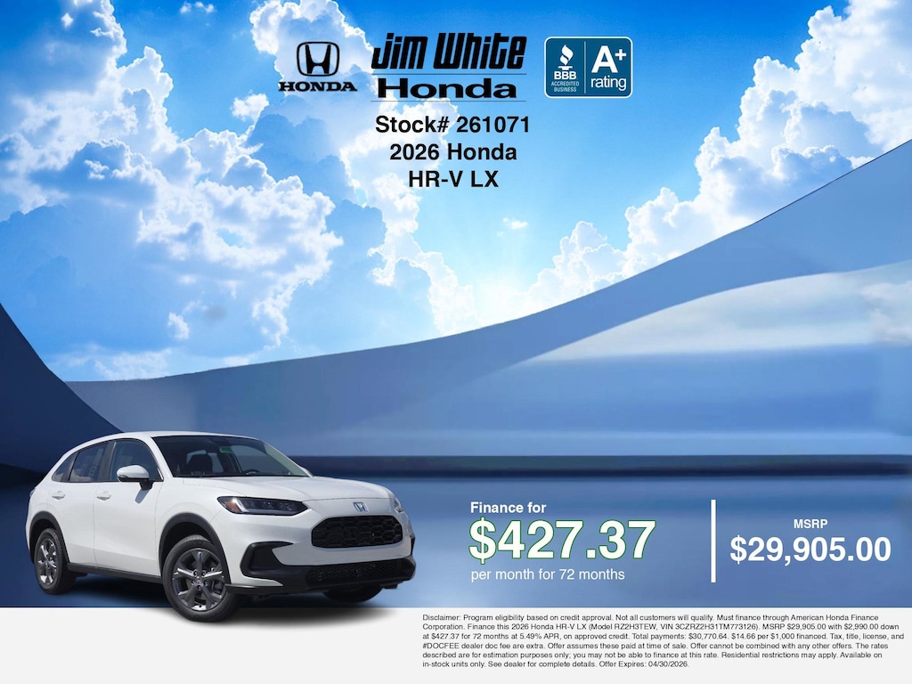 Discover Honda HR-V LX Exceptional Savings at Jim White Honda!