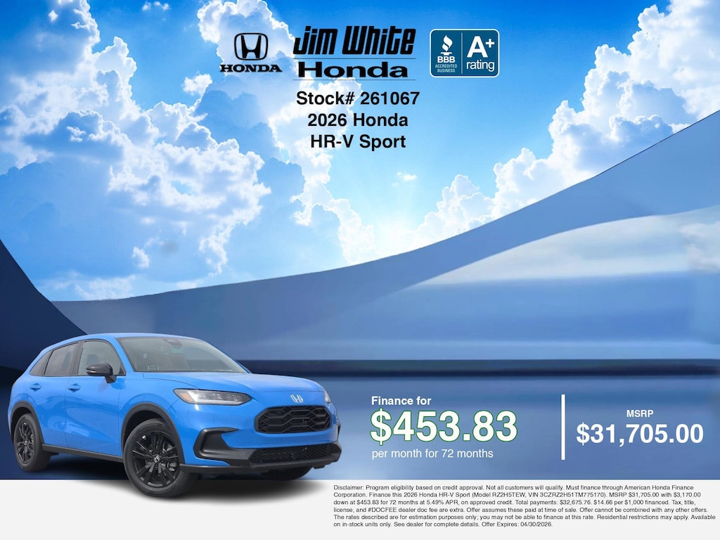 Discover Honda HR-V Sport Exceptional Savings at Jim White Honda!
