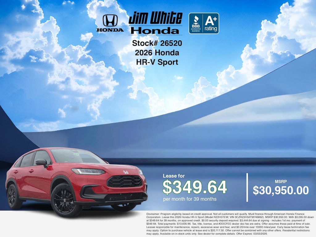 Discover Honda HR-V Sport Exceptional Savings at Jim White Honda!