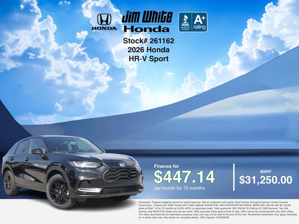 Discover Honda HR-V Sport Exceptional Savings at Jim White Honda!
