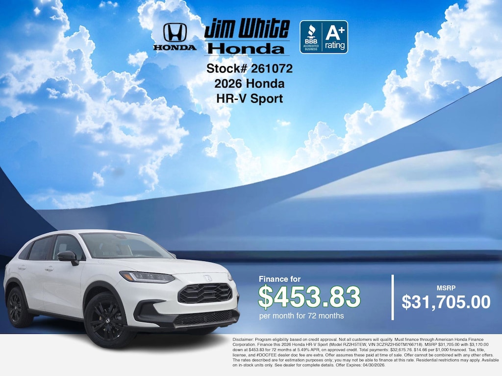 Discover Honda HR-V Sport Exceptional Savings at Jim White Honda!