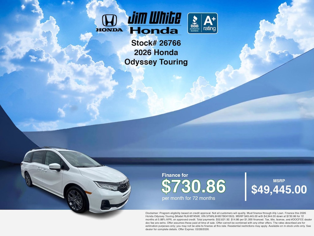 Discover Honda Odyssey Touring Exceptional Savings at Jim White Honda!