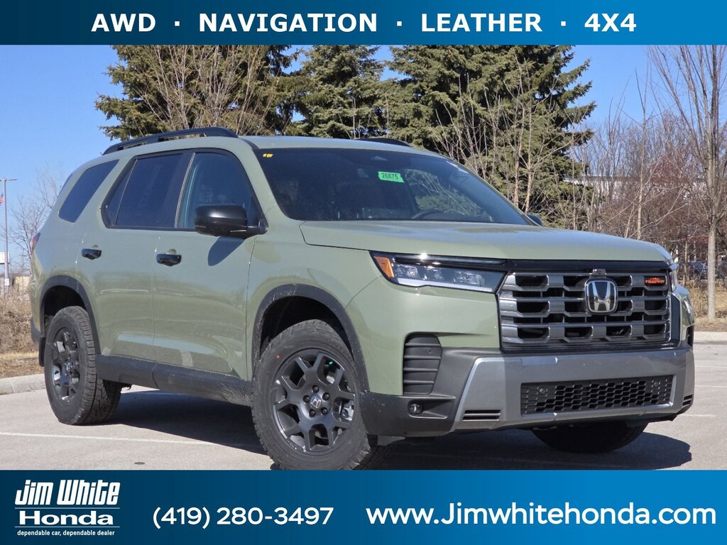 This 2026 Honda Pilot TrailSport is equipped with cutting-edge features like LEATHER, LEATHER TRIM SEATS, 4X4, AWD, NAVIGATION, PANO-ROOF, WIRELESS PHONE CHARGER, 3RD ROW SEAT, 360 CAM, HEATED SEATS, REMOTE START, APPLE CARPLAY, HEATED-REAR SEATS, ANDROID AUTO, LANE-DEPARTURE WARNING, ALLOY-WHEELS, BLIND SPOT MONITORING, HOMELINK, BACKUP CAMERA, HEATED-STEERING WHEEL, USB-C, REAR A/C, STOW "N GO, BLUETOOTH, WiFi Hotspot, Dual Power Seats, Remote entry, Fog Lamps, usb that Toledo and Perrysburg drivers desire.